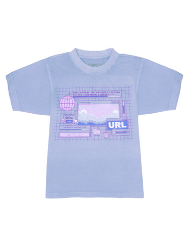 This light blue, oversized tee is adorned with a pastel, desktop pop-up design.